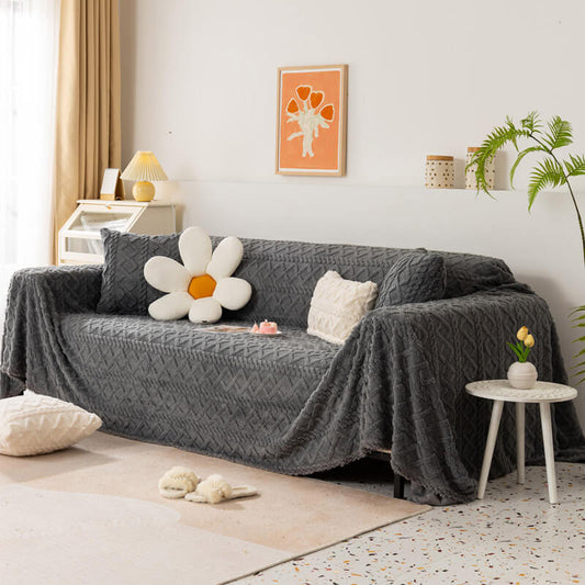 Shaggy Couch Cover Blanket, Couch Protectors from Cats Scratching, Sectional Couch Covers for L-Shape