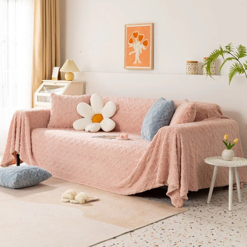 Shaggy Couch Cover Blanket, Couch Protectors from Cats Scratching, Sectional Couch Covers for L-Shape